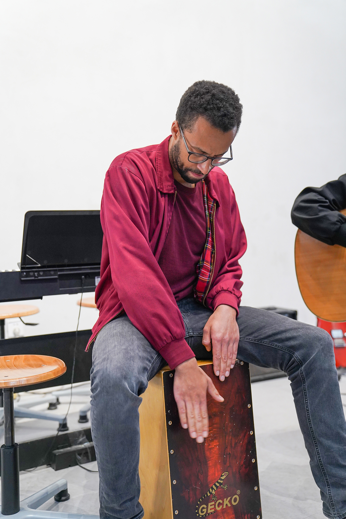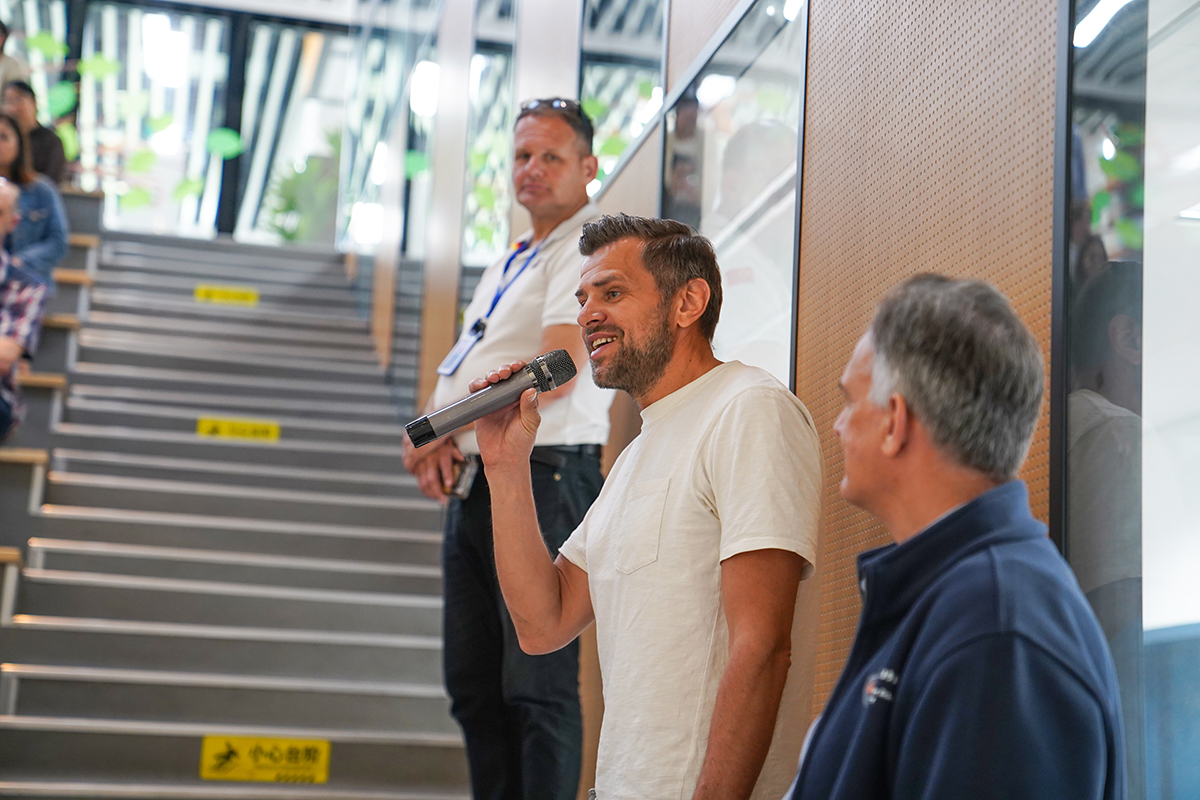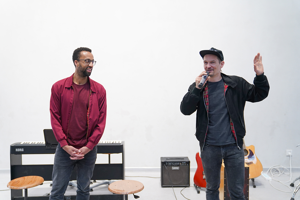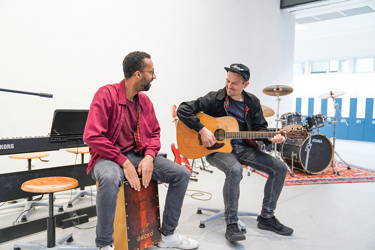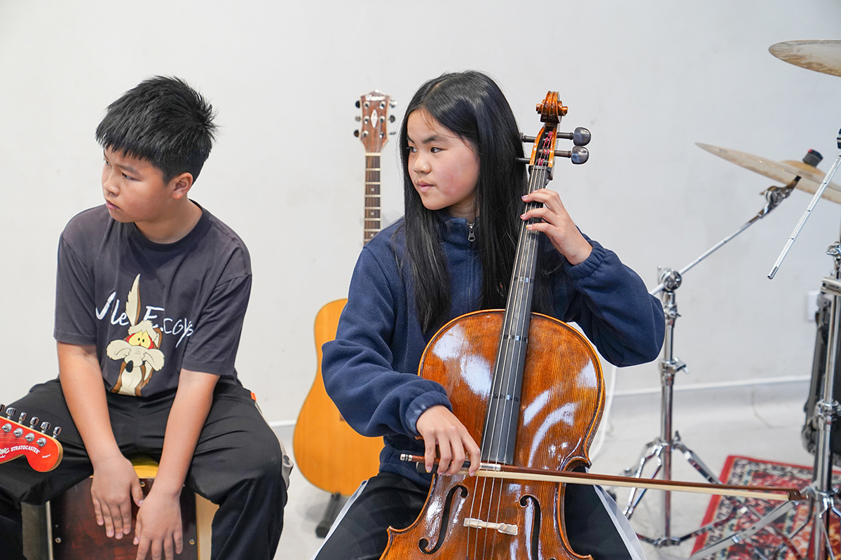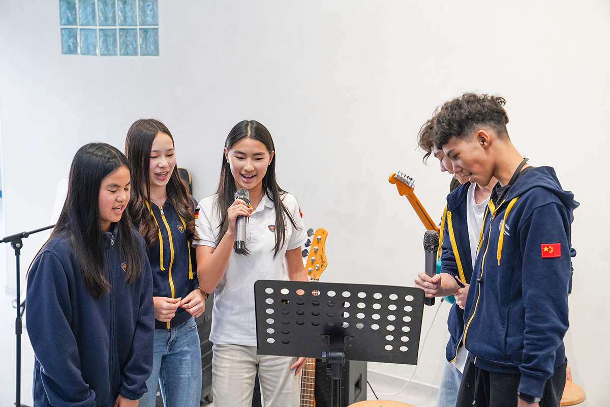 Auch die Schüler*innen präsentierten beeindruckende Beiträge aus dem Schulorchester und stellten viele Fragen rund um Musik. Philipp und Lukas beantworteten diese geduldig, demonstrierten Spieltechniken live und zeigten, wie man musikalische Emotionen besser ausdrücken kann. In einer entspannten und fröhlichen Atmosphäre überbrückten zwei Generationen von Musikern Alters- und Landesgrenzen – vereint durch die gemeinsame Liebe zur Rockmusik – und führten einen intensiven, inspirierenden Austausch.