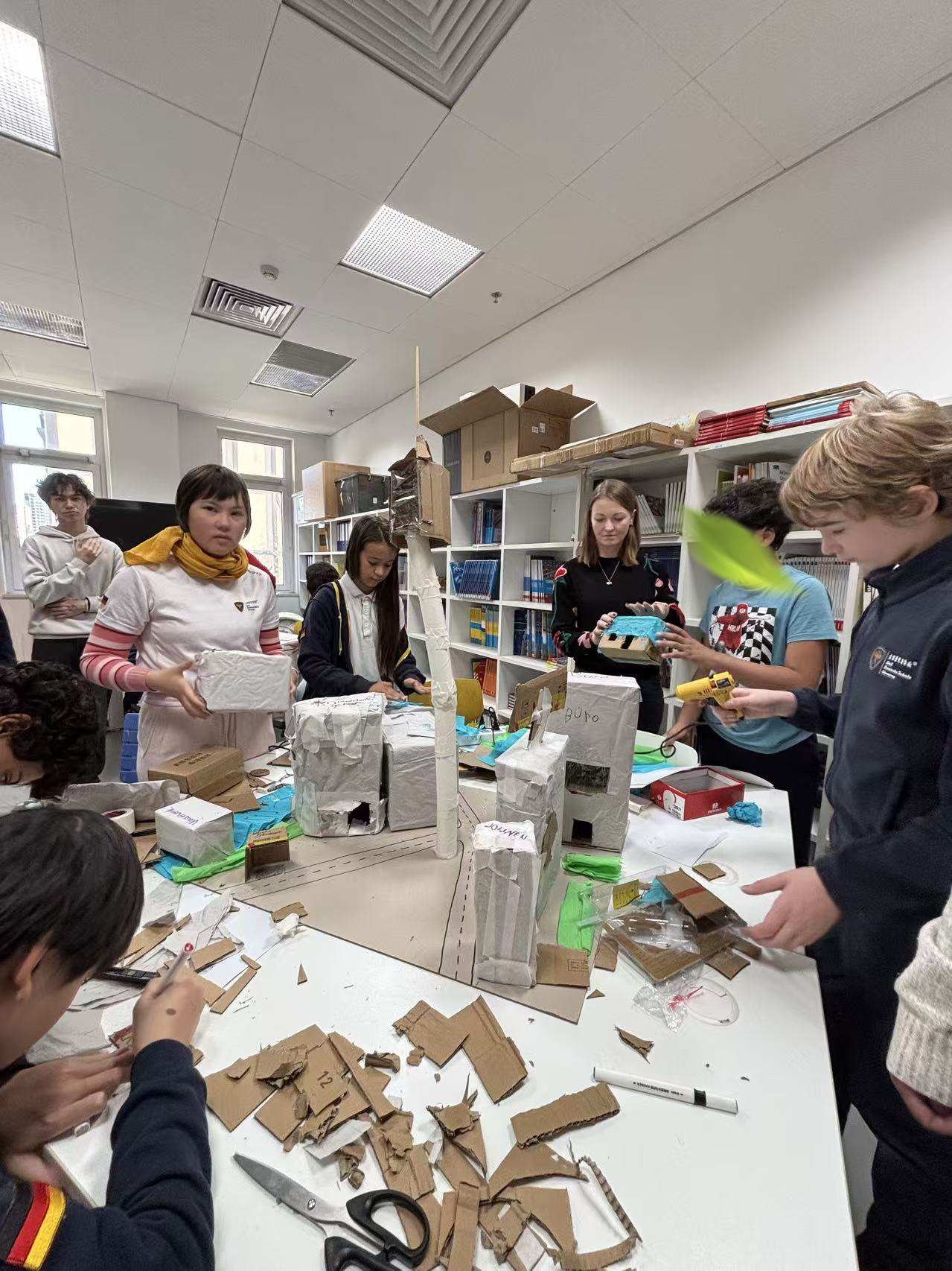价值日的活动由多个循序渐进的环节组成。活动开始时,学生们以跨年龄小组的形式,共同设计并建设各自的“村庄区域”。他们充分发挥想象力,用丰富的色彩和对细节的用心,打造出一个个风格各异、各具特色的街区。道路、建筑、广场和象征性元素彼此衔接,清晰传达出一个理念:每个街区都是的,但只有齐心协力,才能形成一个运转良好的整体。