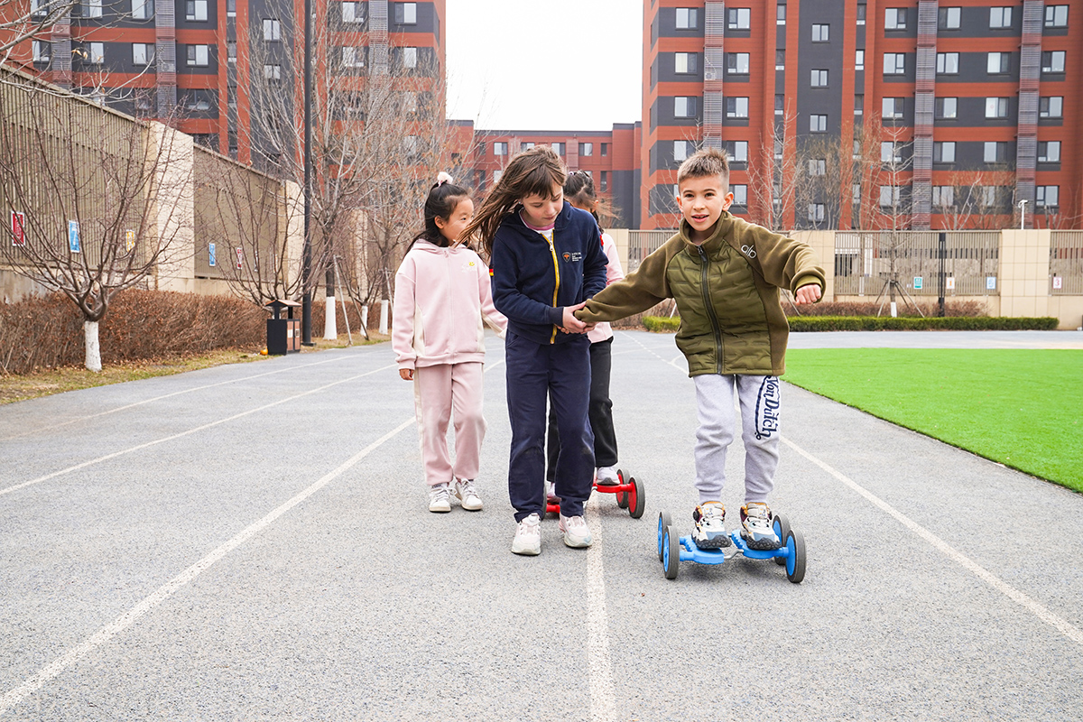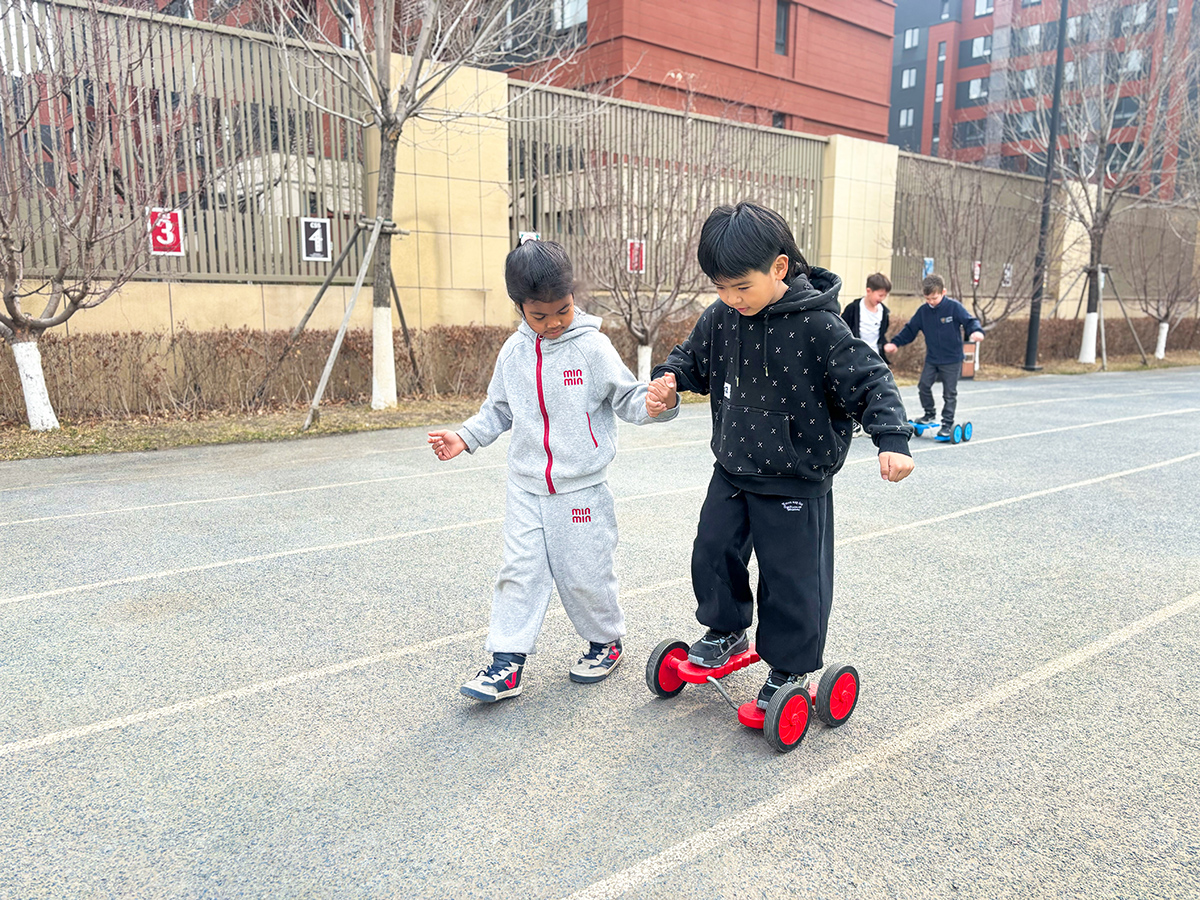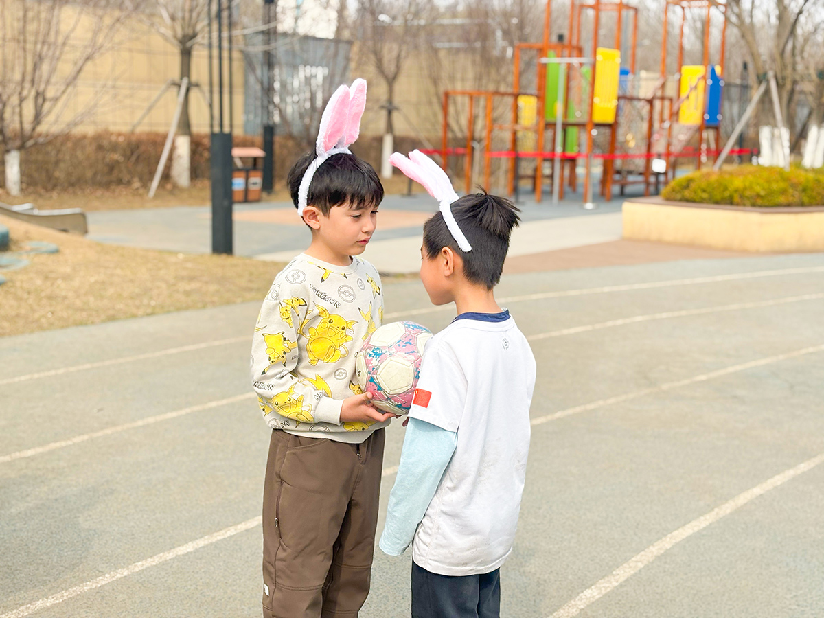 Zu Beginn der Veranstaltung verwandelte sich der Schulhof in eine fröhliche Wettkampfarena, in der spannende Staffelspiele stattfanden. Die Schülerinnen und Schüler meisterten gemeinsam verschiedene Herausforderungen wie Zweier-Dribbeln, Würfelwerfen, Fahren mit kleinen Rollfahrzeugen und Zielwerfen. Nur wer die Aufgaben im Team erfolgreich bewältigte, erhielt die Chance, an der Ostereiersuche teilzunehmen. Mit großer Begeisterung und guter Zusammenarbeit gingen die Kinder an den Start. Dabei lernten sie, miteinander zu kommunizieren und zu kooperieren, und erlebten die Freude am gemeinsamen Vorankommen.